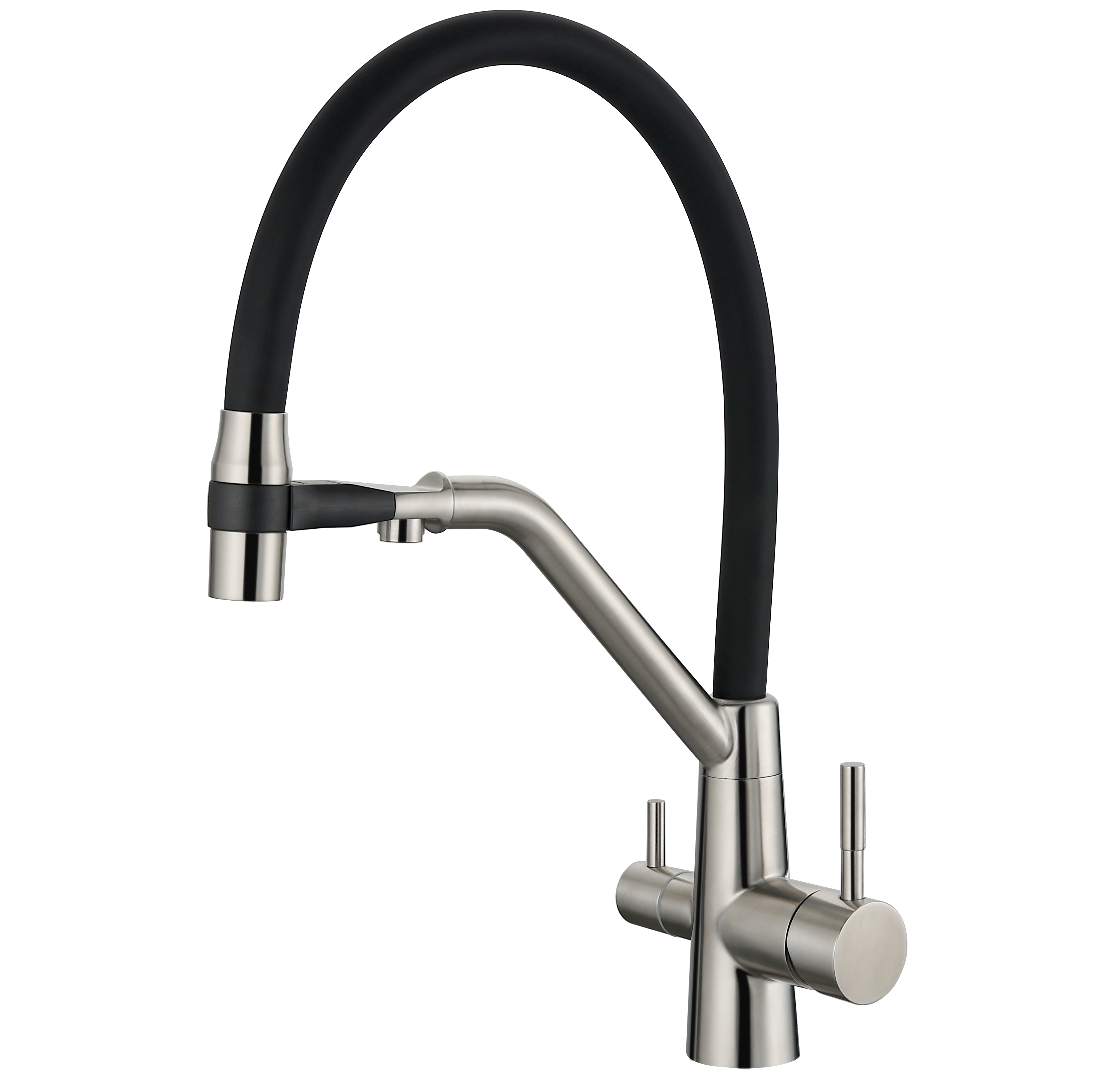 Sly New Trends Chrome Steel Black Kitchen Sink with Waterfall Faucet Kitchen